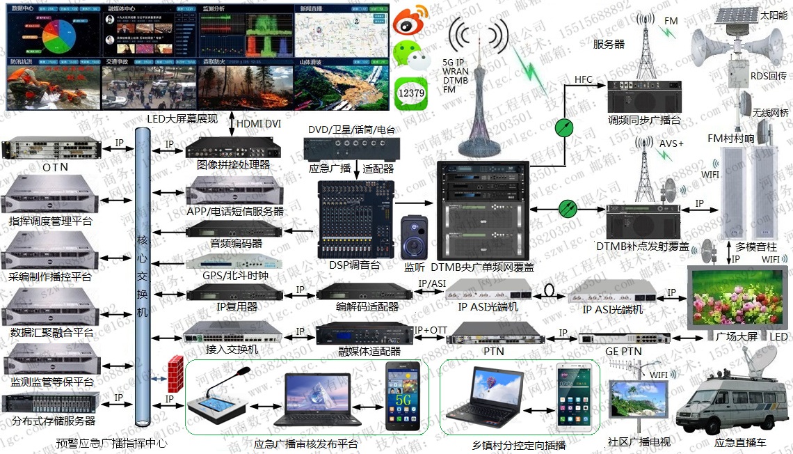 應急廣播整體系統綜合采用應急廣播系統中心平臺17個系統模塊組成,制作播發平臺設計、調度控制平臺設計、安全等保平臺設計、運維監管平臺設計,縣直分控平臺設計,傳輸覆蓋組網設計,鄉鎮村級系統前端設計,系統接收終端設計,新媒體公眾平臺,機動應急廣播系統,周邊環境監測監管等子系統。
